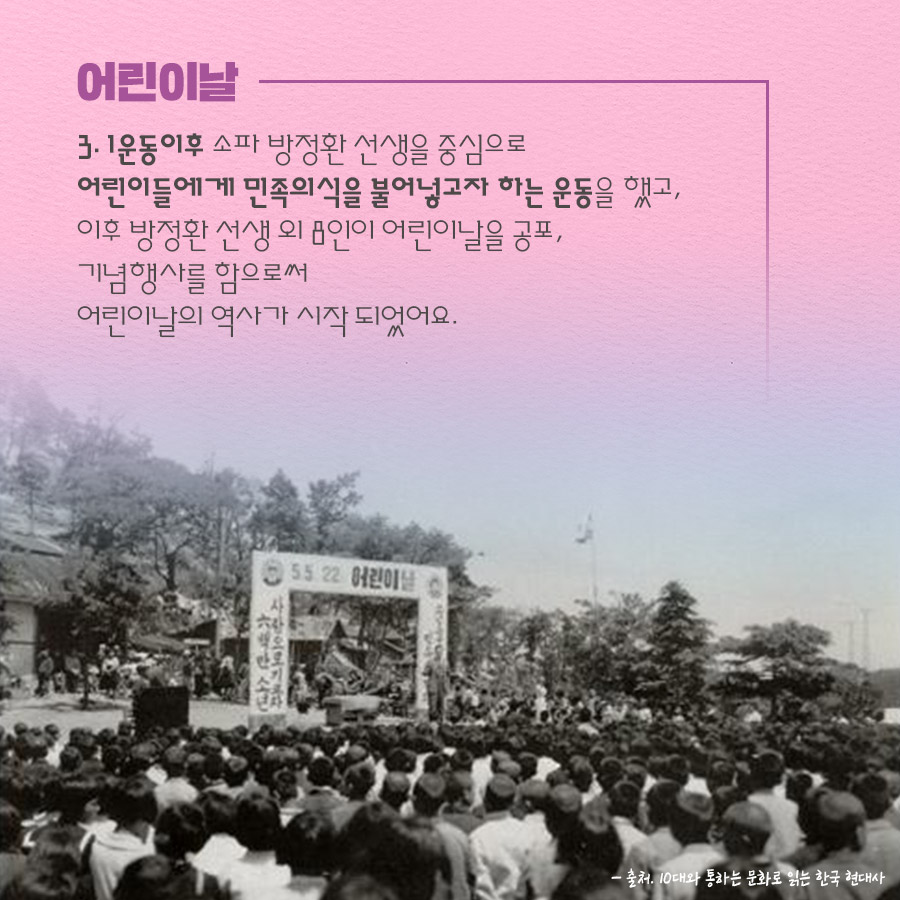 즉, 어린이날은 3.1운동 이후 어린이들의 민족의식을 위해