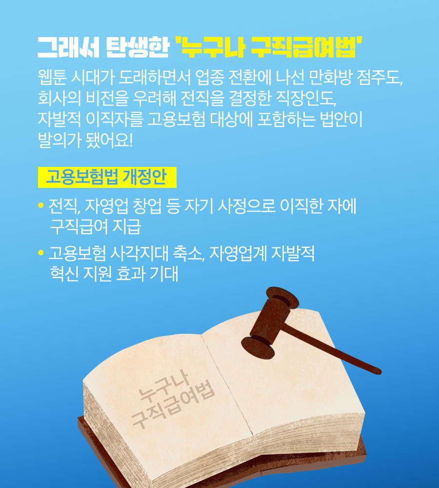 자발적 이직자를 고용보험 대상에 포함하는 법안이 발의가 됐다고 합니다!