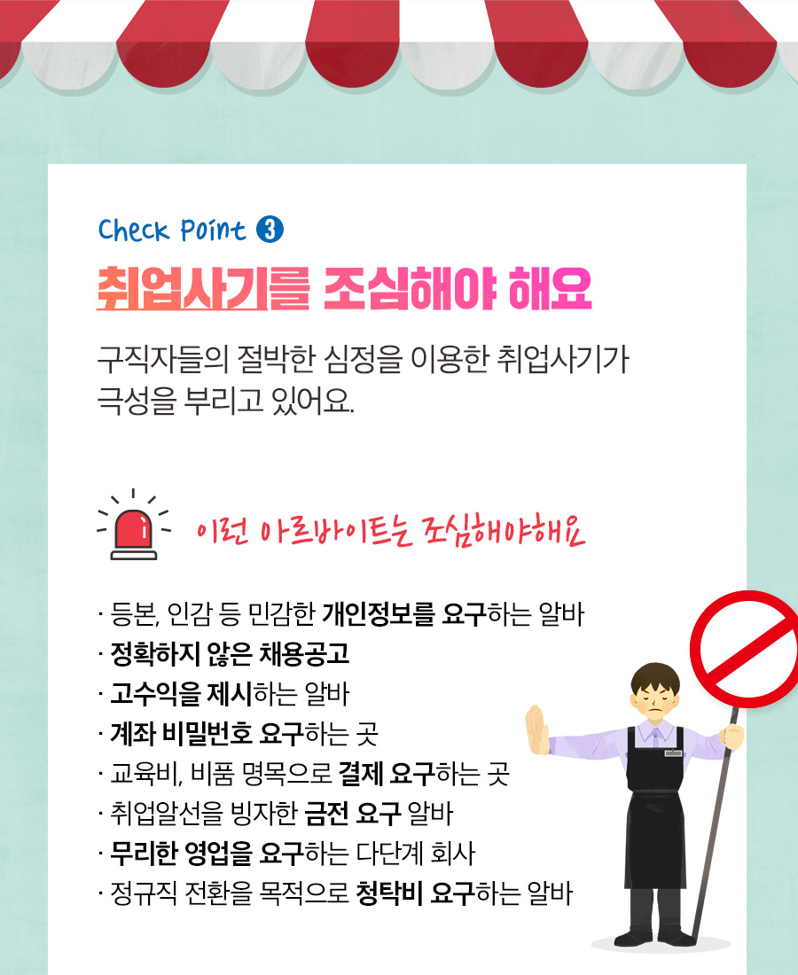 취업사기를 조심해야 해요.