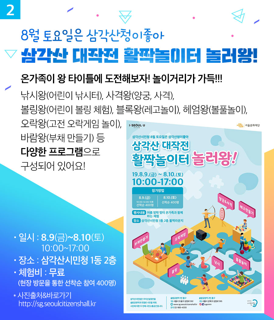 2) 8월 토요일은 삼각산청이좋아 <삼각산 대작전 활짝놀이터 놀러왕!>