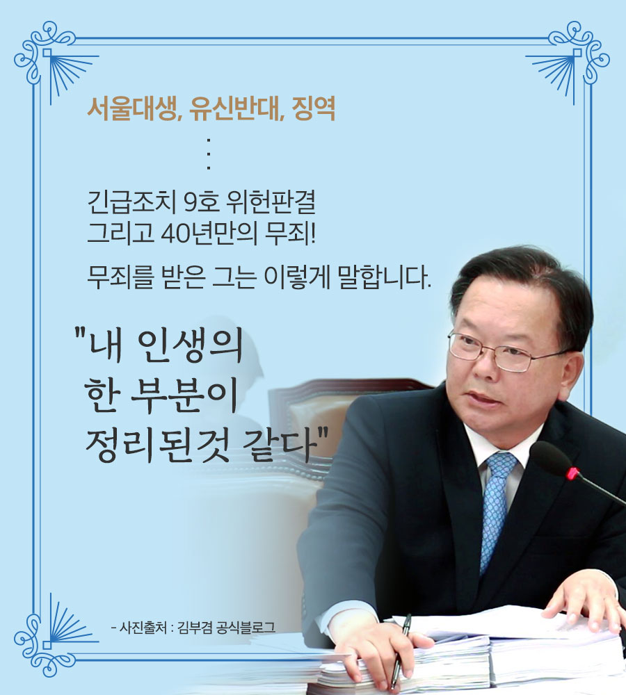헌법재판소의 판결과 과거사 반성을 위한 검찰의 재심으로 그는 무죄가 되었습니다.