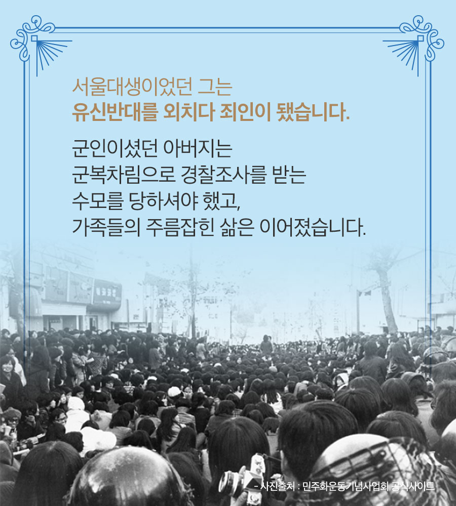 서울대생이었던 그는 유신반대를 외치다 죄인이 됐습니다.