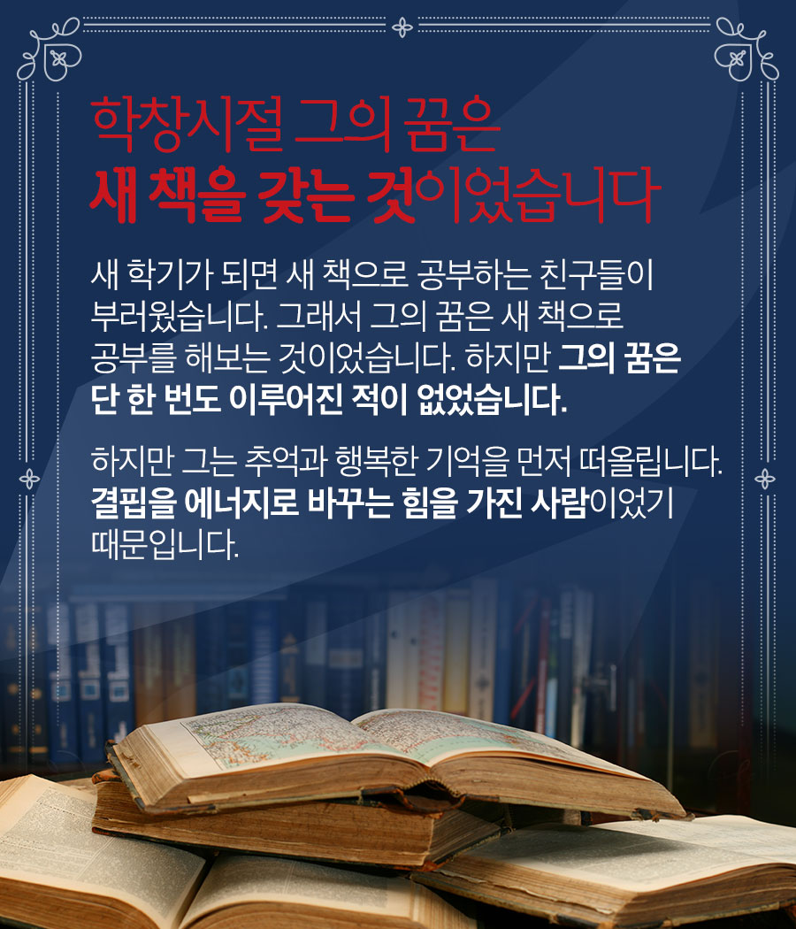 학창시절 그의 꿈은 새 책을 갖는 것이었습니다.