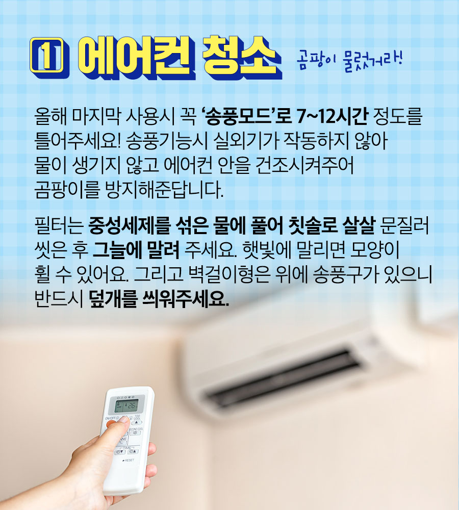 올해 마지막 사용시 꼭 ‘송풍모드’로 7~12시간 정도를 틀어주세요!