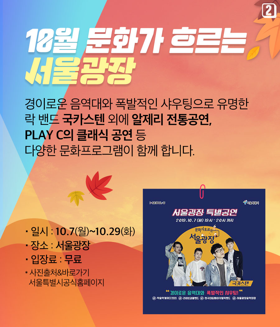 * 서울시 2019년 월별문화행사(10월호) 참조