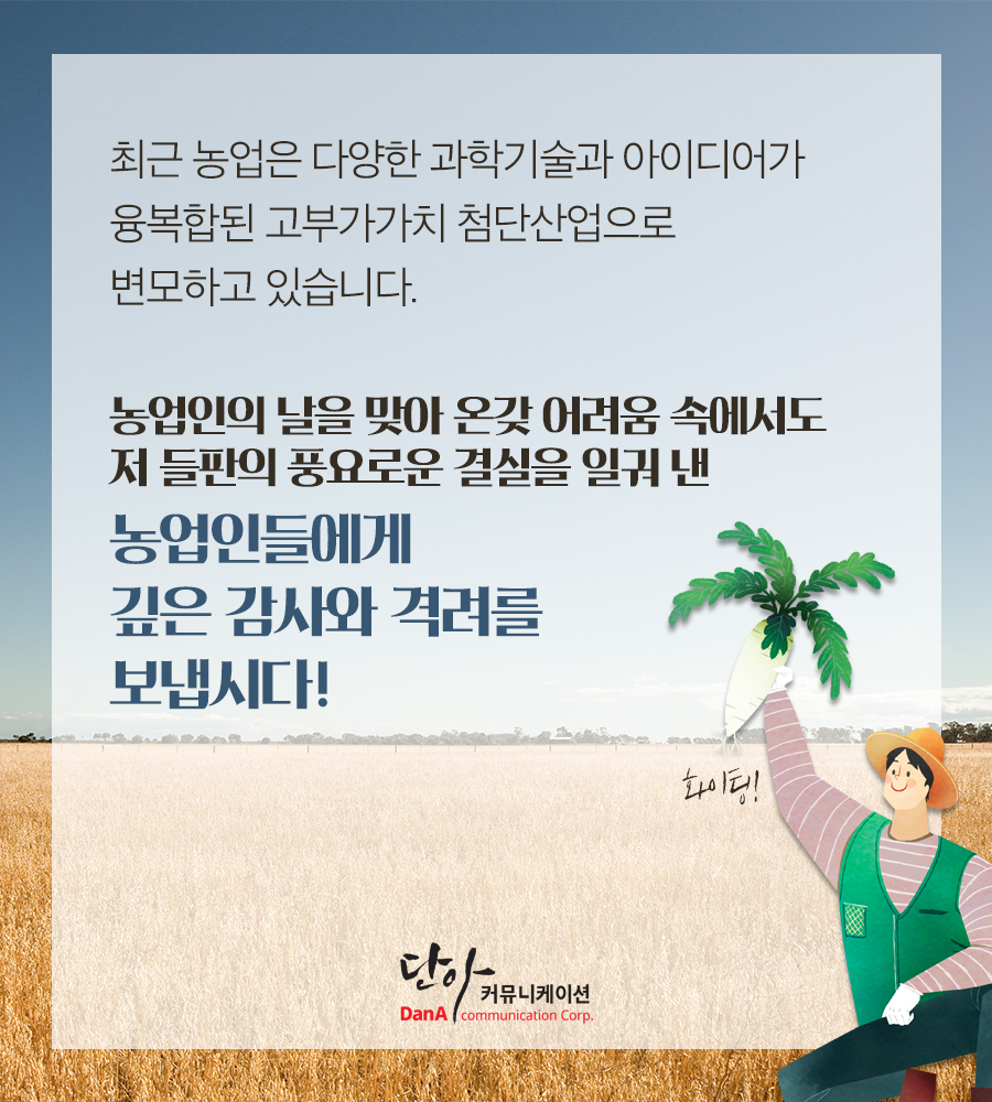 농업인들에게 깊은 감사와 격려를 보냅시다!