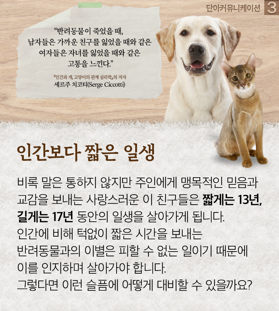인간에 비해 턱없이 짧은 시간을 보내는 반려동물과의 이별은
