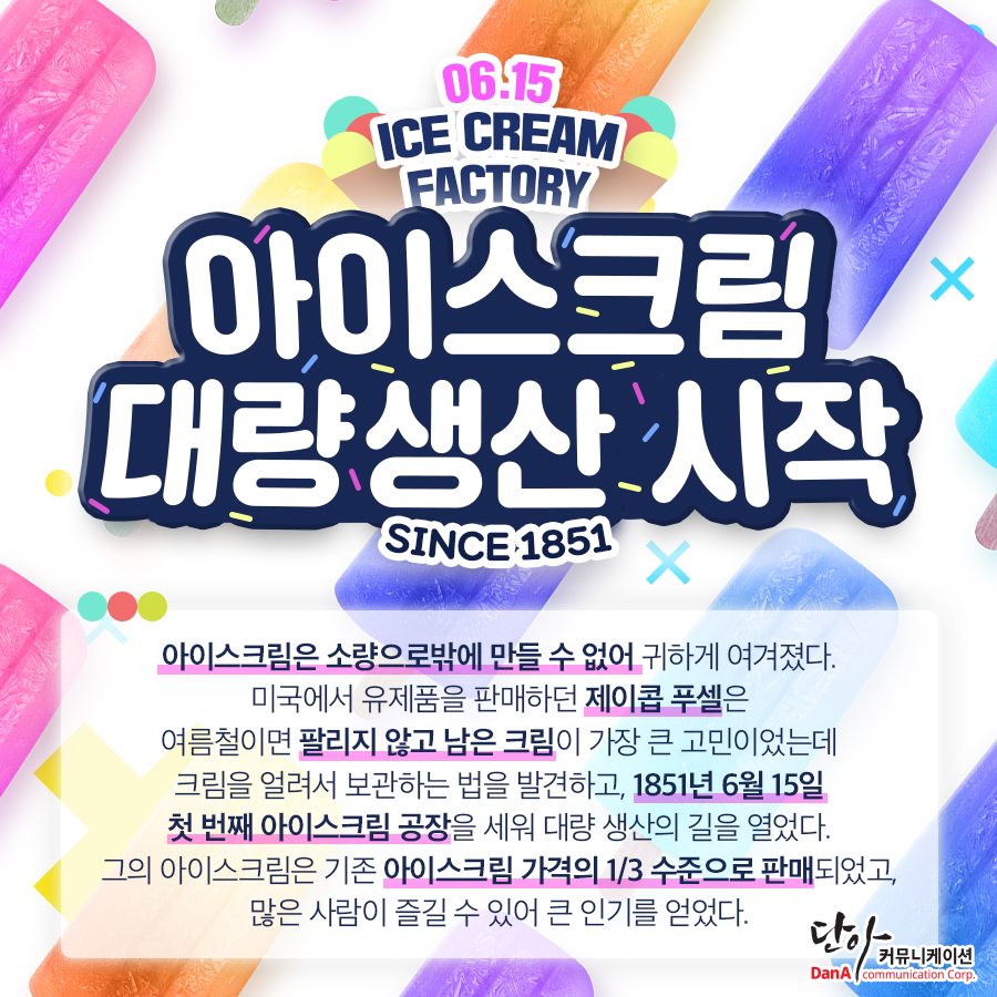 1851년 6월 15일, 아이스크림의 첫 대량 생산
