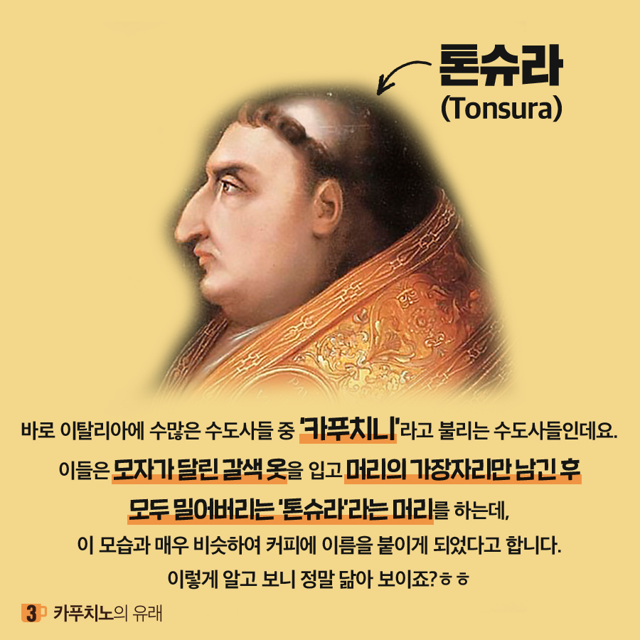 에스프레소, 아메리카노, 카페라떼, 카페마끼야또 등이 있지만 그 중에서도 ‘카푸치노(Capuccino)‘의 유래에 대해