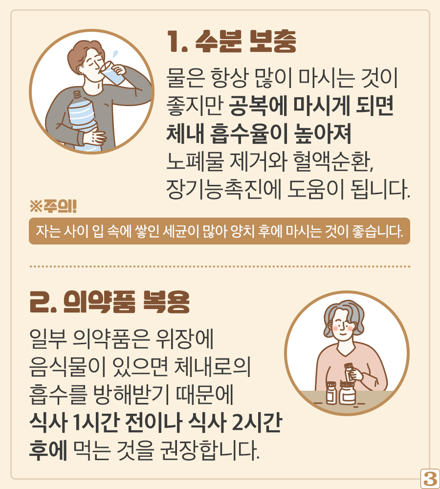 ※ 자는 사이 입 속에 쌓인 세균이 많아 양치 후에 마시는 것이 좋습니다.