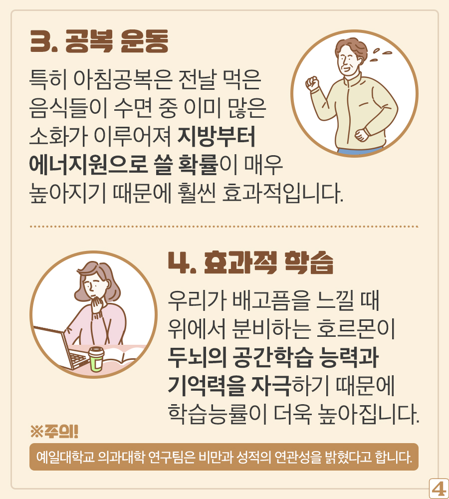 특히 아침공복은 전날 먹은 음식들이 수면 중 이미 많은 소화가 이루어져
