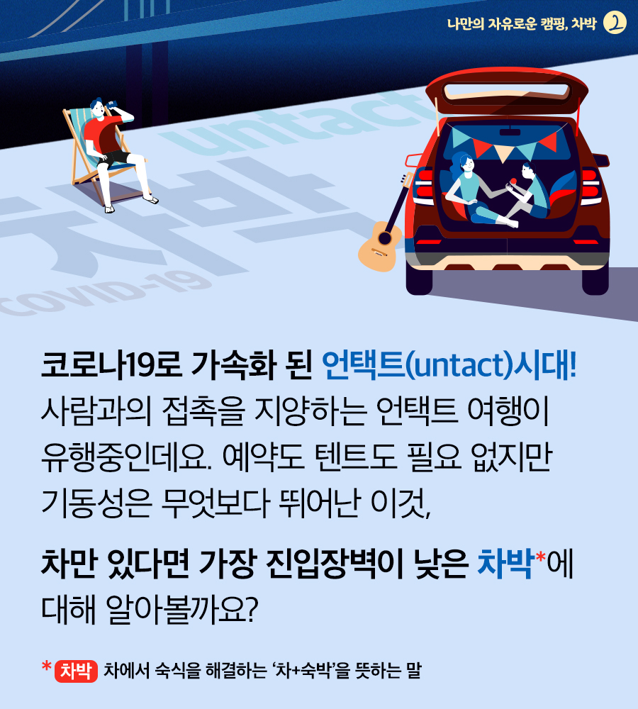 차만 있다면 가장 진입장벽이 낮은 ‘차박’*에 대해 알아볼까요?