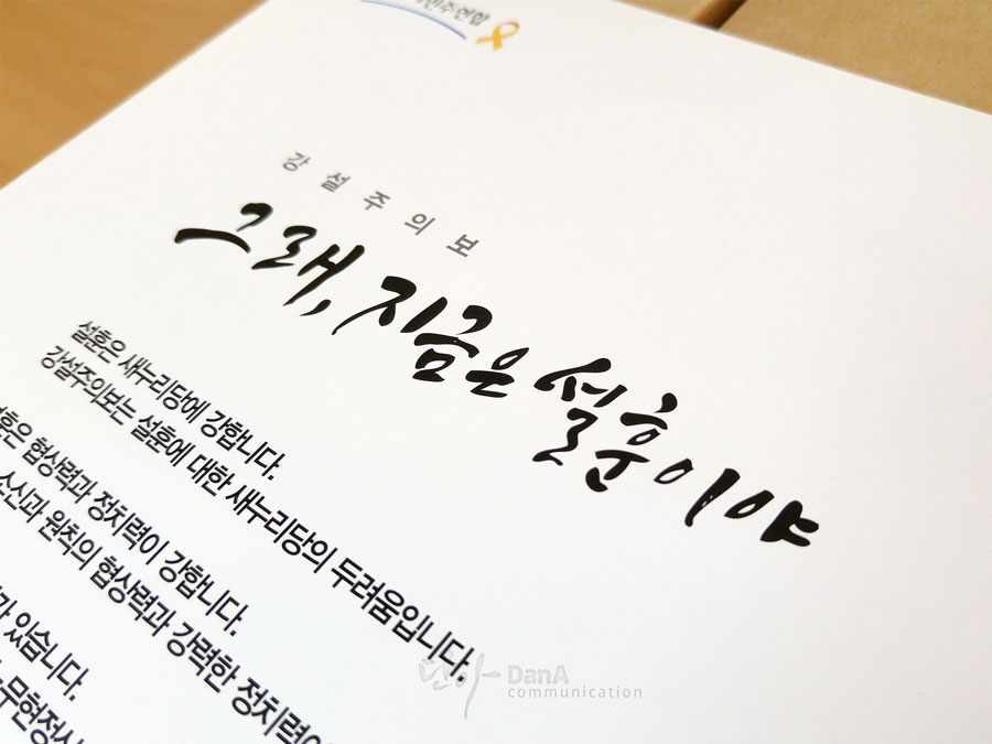 캘리그라피로 간결하면서도 강한 느낌을 주는 선거홍보물을 제작하였습니다.