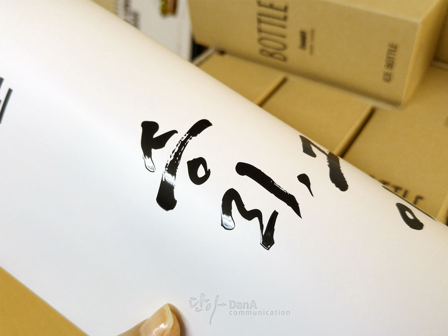 캘리그라피에는 에폭시 효과를 넣어 입체적인 느낌을 주고, 무광코팅으로 마무리하였습니다.