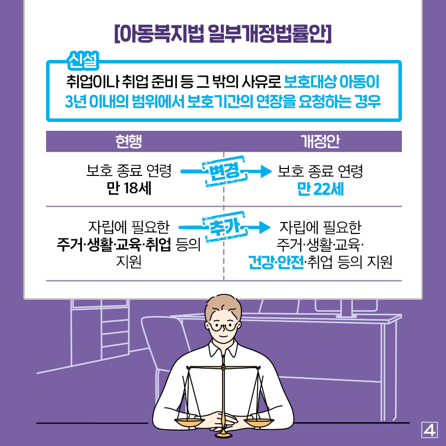 이에 국회에서는 보호종료 아동의 자립을 위해 개정안이 발의 되었습니다.
