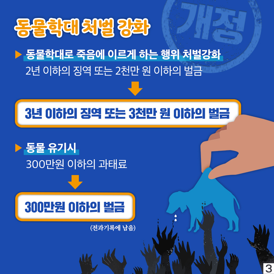 ▶ 동물학대로 죽음에 이르게 하는 행위 처벌강화