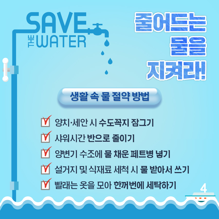 줄어가는 물을 지키기 위한 생활 속 실천방안은 무엇이 있을까요?