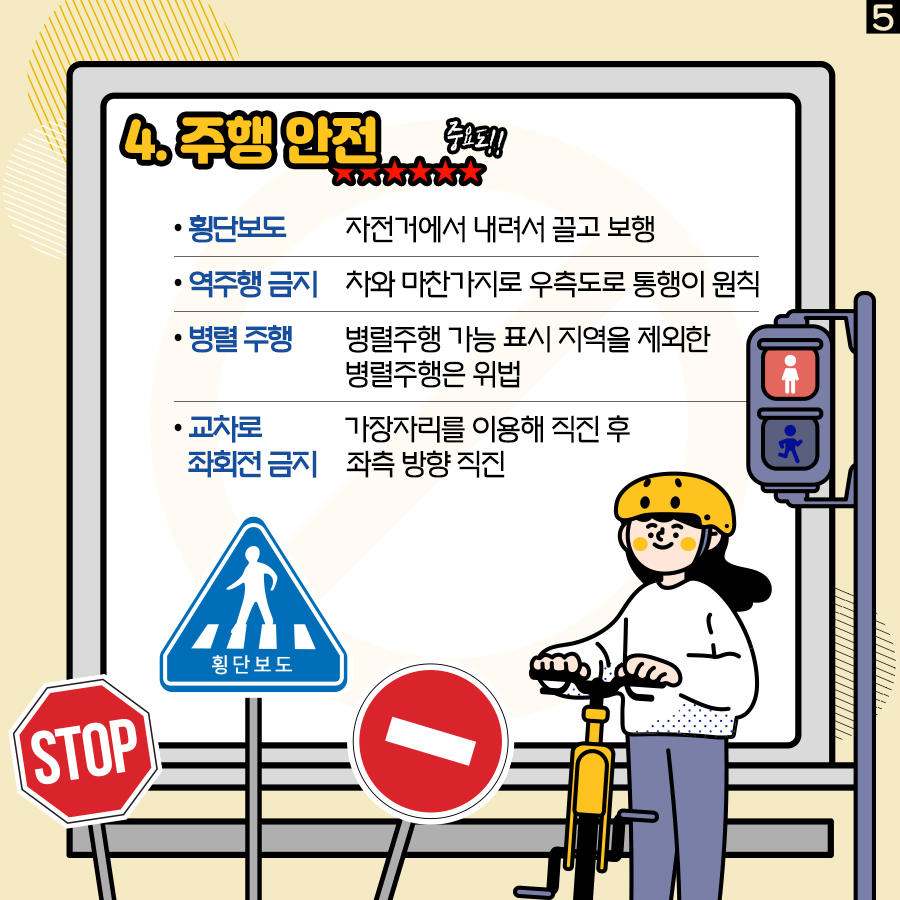 - 횡단보도: 자전거에서 내려서 끌고 보행