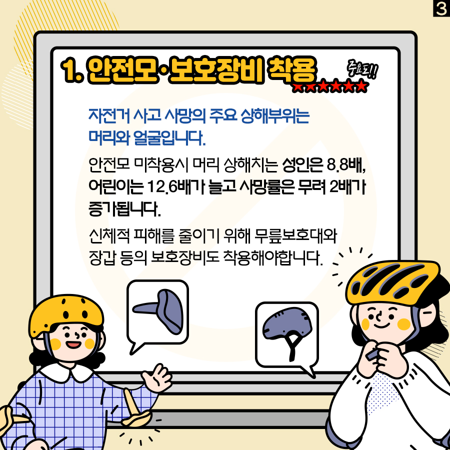 그렇다면 자전거 이용 시 반드시 지켜야 할 수칙은 무엇이 있을까요?