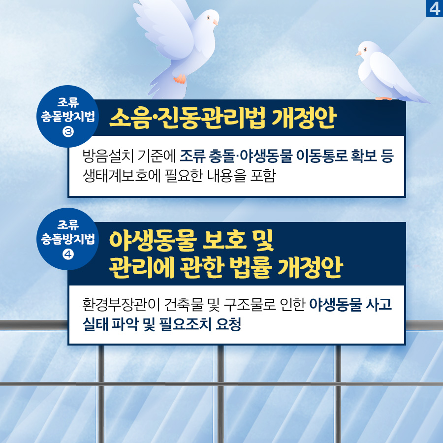 계속되는 피해방지를 위해 조류 충돌방지 4법이 발의 되었습니다.
