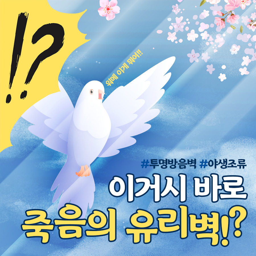 야생조류들 시야에는 보이지 않아 충돌을 유발하여 폐사 혹은 심각한 부상을 당하게 됩니다.