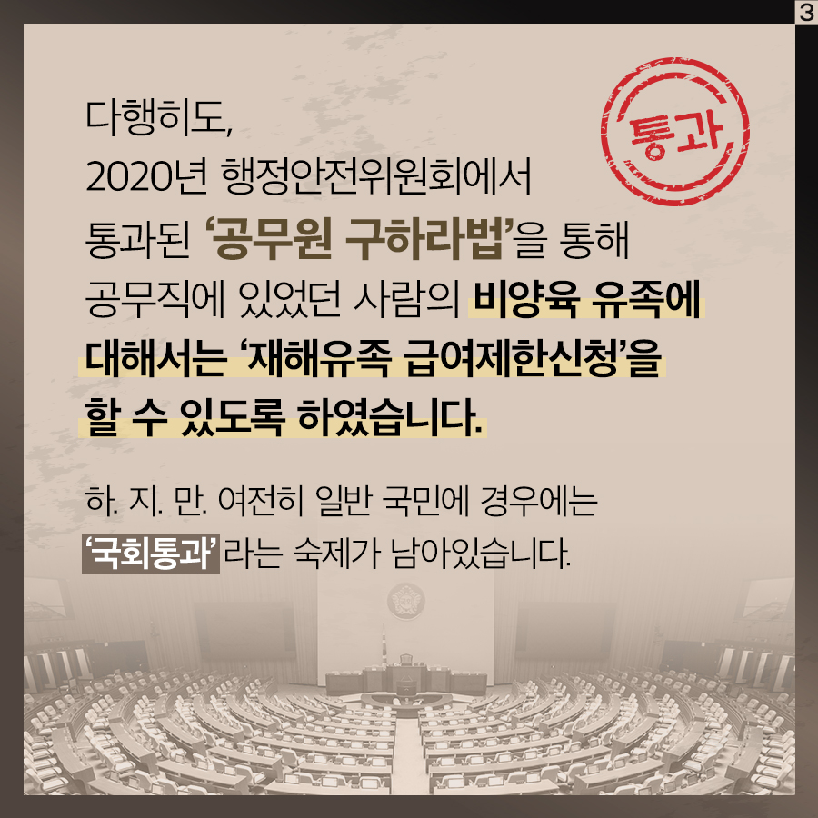유족들을 위해 이번 국회에서는 꼭 법안이 통과되길 기대합니다.