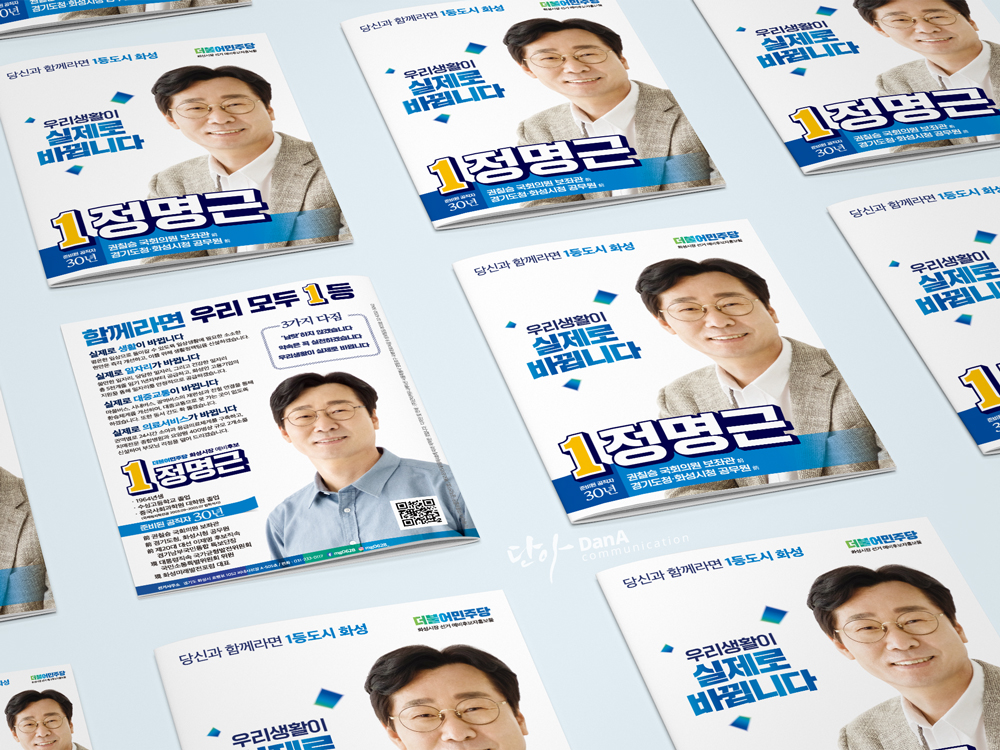 전국동시지방선거 더불어민주당 화성시장 예비후보자 정명근 예비홍보물 디자인 및 제작 완료하였습니다