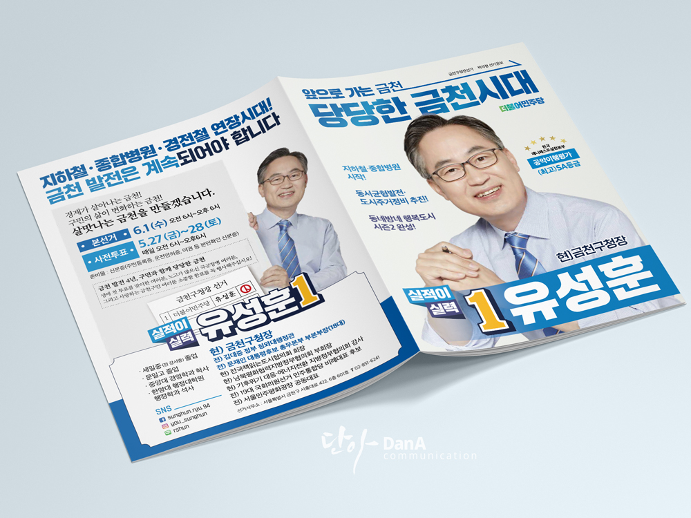 <전국동시지방선거 더불어민주당 금천구청장 유성훈 후보 선거공보물 디자인 및 제작 완료>