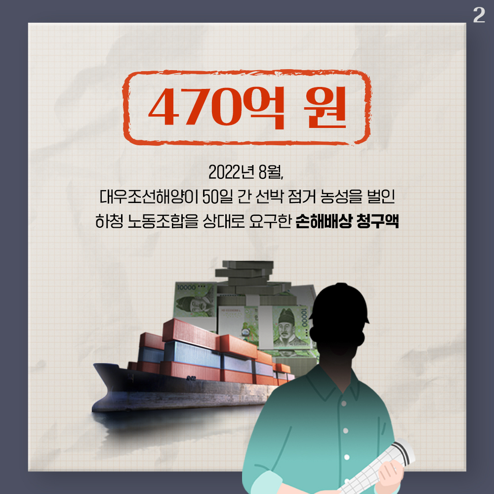 2022년 7월 파업한 하청 노동자가 대우조선해양으로부터 청구받은 손해배상금액