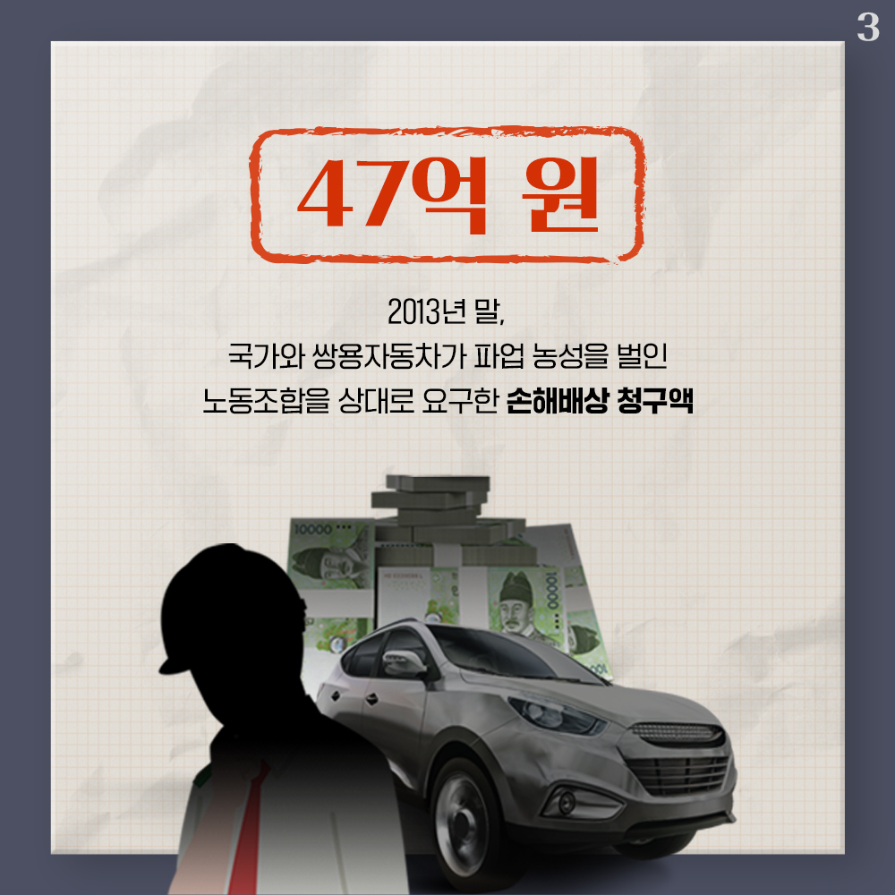 2013년 말, 쌍용차 노동조합이 국가와 회사로부터 청구받은 손해배상 금액