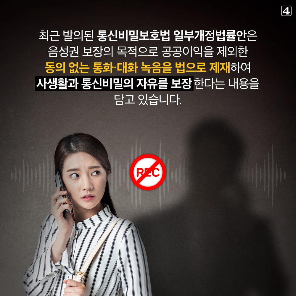 최근 국회에서 동의 없는 통화 내용 녹음을 금지하자는 법안이 발의되었습니다