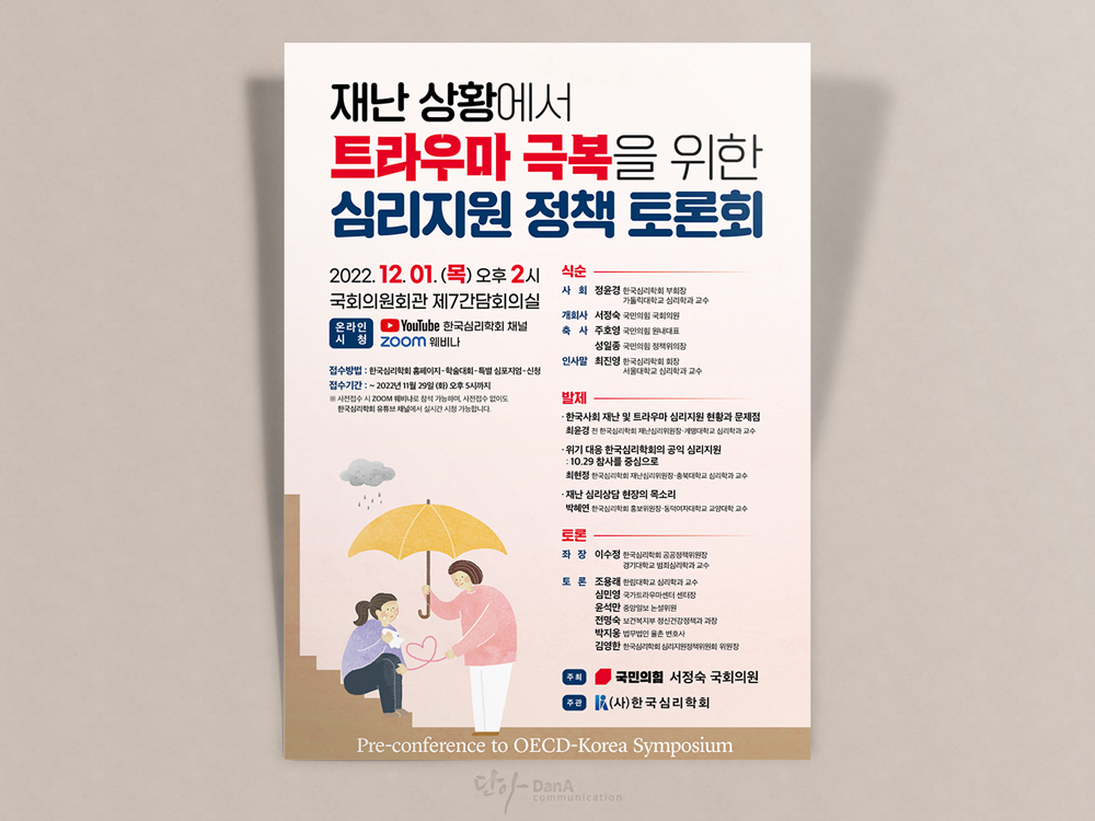 <재난 상황에서 트라우마 극복을 위한 심리지원 정책 토론회 포스터/자료집 디자인 및 제작>