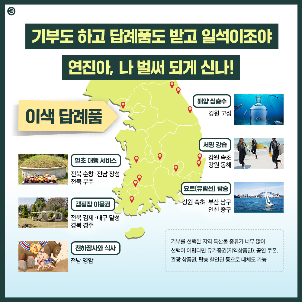 세액 공제지역특산품이나 상품권을 답례품으로 받을 수 있는 제도