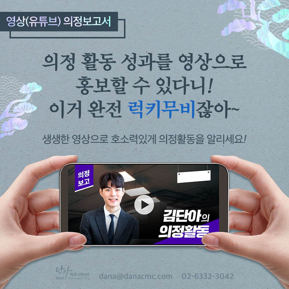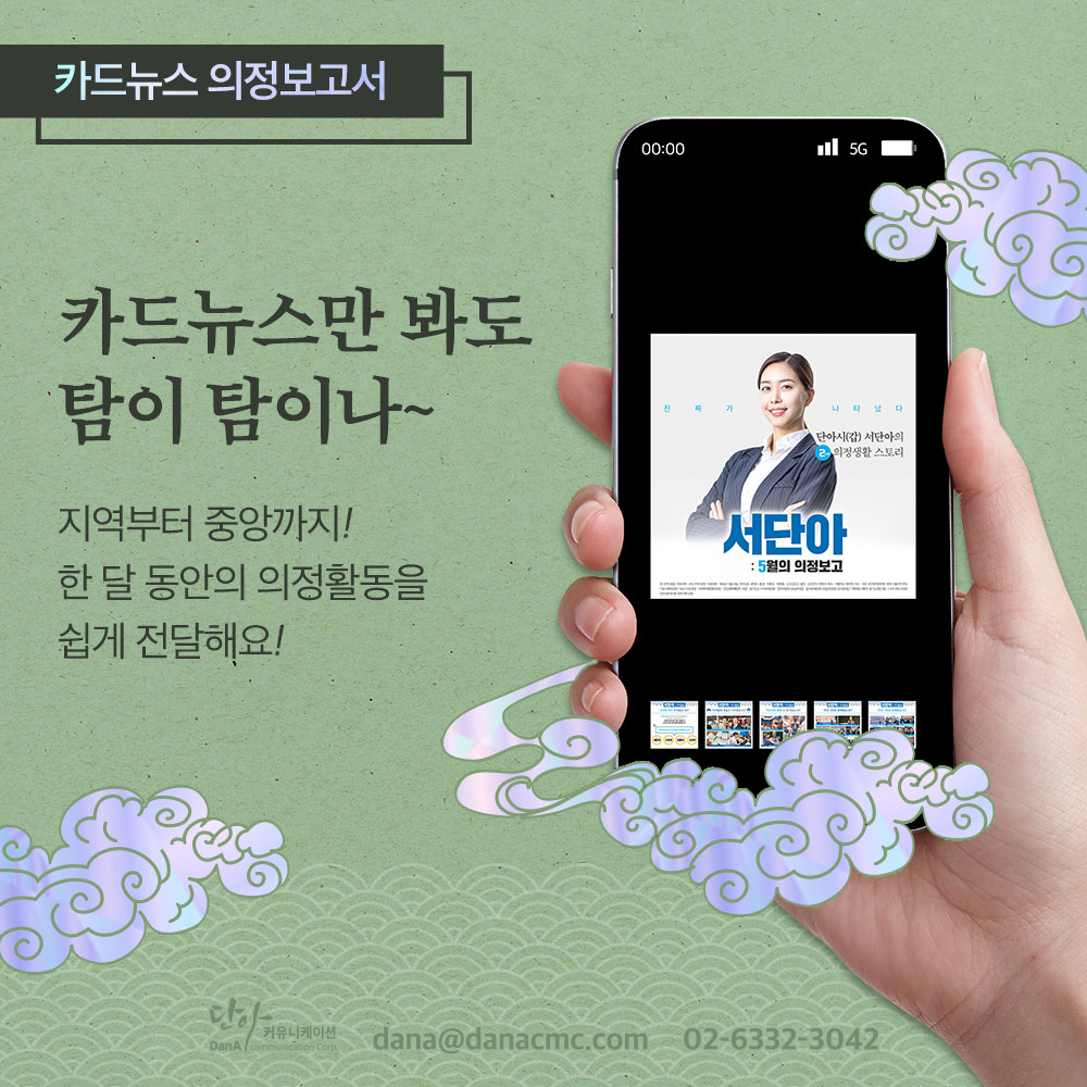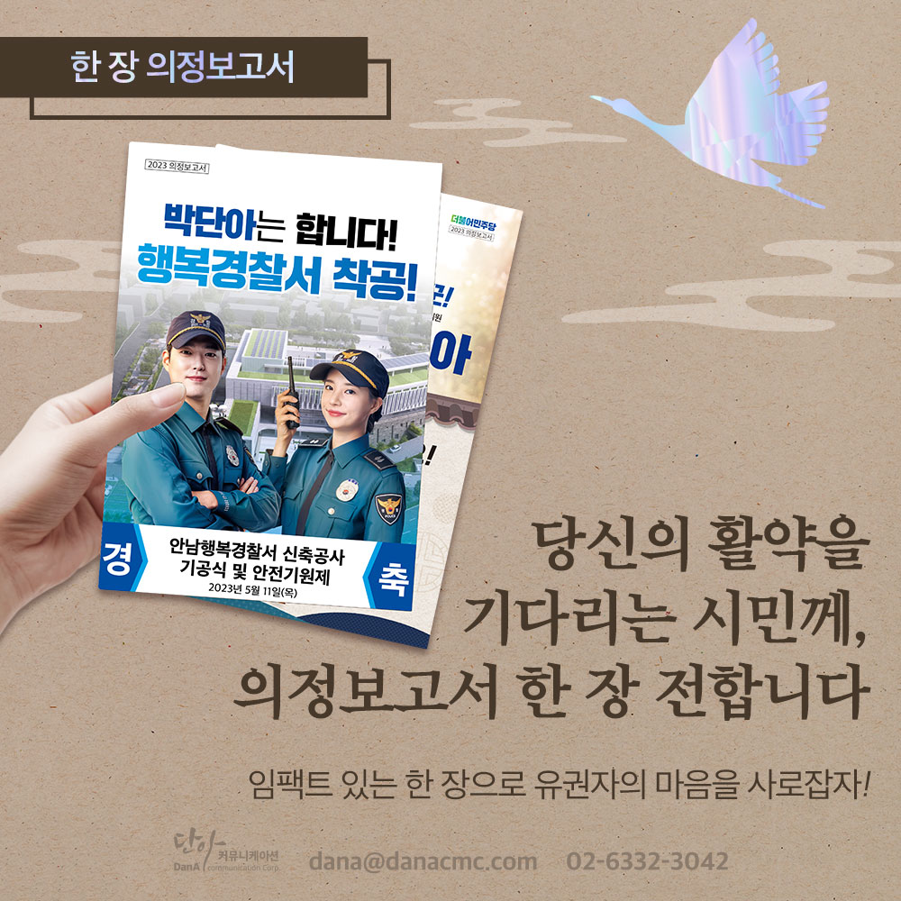 '단아핫소스'는 단아커뮤니케이션에서 제공하는 지식레터 서비스입니다. 매월 2회, 국회의원 의정보고서부터 기념일 카드뉴스까지 다양한 콘텐츠를 통해 의정활동 성과를 한층 더 돋보이게 만들어줄 유용한 정보를 선별하여 전달합니다. 재미있고 유익한 콘텐츠로 여러분의 의정활동을 지원하는 든든한 조력자가 되겠습니다.😎