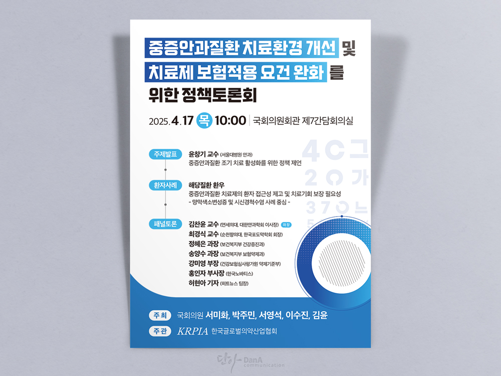 <중증안과질환 치료환경 개선 정책토론회 포스터/자료집 디자인 및 제작>